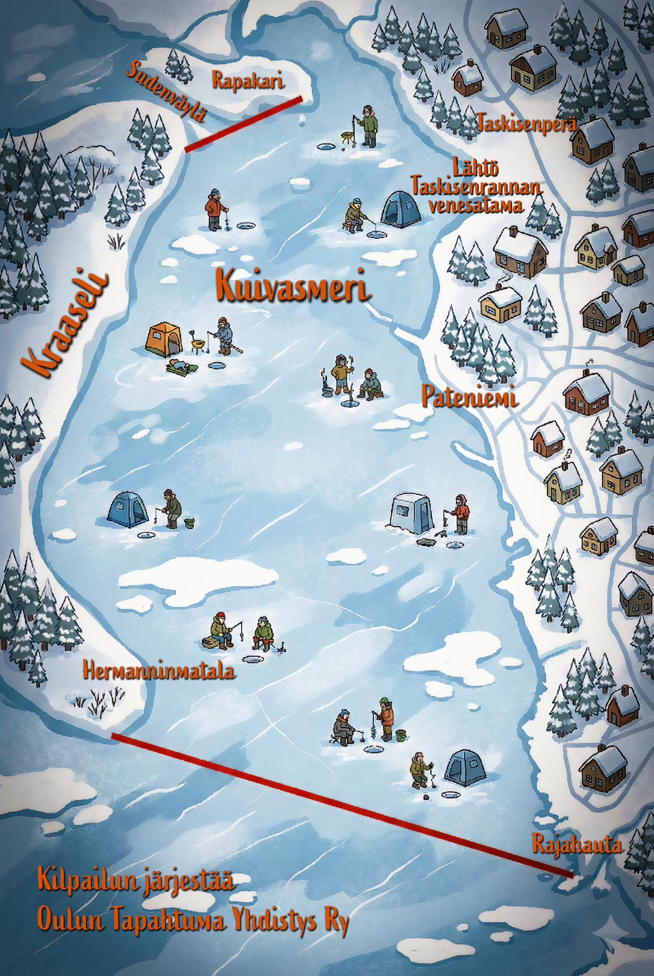 Kilpailun järjestetään Kuivasmerellä ja lähtöpaikka Taskisenrannan Venesatamasta. osoite: Tiiliruukinkuja 12, 90800 Oulu